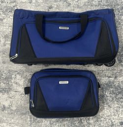 American Tourister Blue Wheeled Duffel Bag w/ Handle & Matching Boarding Bag$30Prnc Frederck, MD