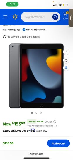 Apple iPad 9th Gen A2602 64GB Space Gray$130Wethersfield, CT