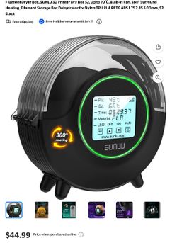 Filament Dryer Box, SUNLU 3D Printer Dry Box S2, Up to 70℃, Built-in Fan, 360° Surround Heating, Filament Storage Box Dehydrator for Nylon TPU PLA PET$40Maryville, TN