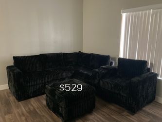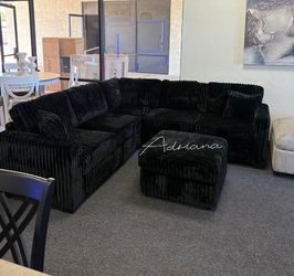 Stylish Black Sectional Sofa With Ottoman Black Corduroy Fabric Material $529Los Angeles, CA