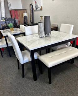 5-pc Dining Table Set With Bench White Faux Marble Table Top$299Los Angeles, CA