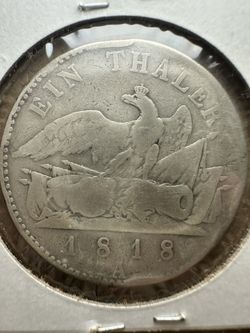 1818 Prussian Thaler coin featuring a crowned eagle over weapons on the reverse side. $180Gardena, CA