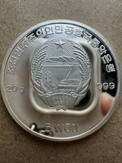 5 Won silver coin 2002 North Korea Kouprey silver coin, part of the "Fauna of Asia" series. $200Gardena, CA