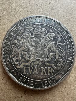 1897 Swedish 2 Kronor silver coin minted to commemorate the 25th anniversary of King Oscar II's reign. $250Gardena, CA
