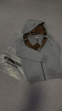 Burberry Grey Zip Hoodie with Check Lining - Mens Size Medium $170Bremerton, WA