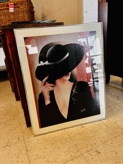 Elegant framed art print depicting a mysterious woman wearing a wide-brimmed black hat that partially conceals her face$35Phoenix, AZ