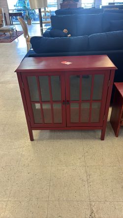 Description: Mid-century style wooden display cabinet featuring a glass front and side panels for clear viewing. $55Phoenix, AZ
