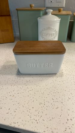Better Homes & Gardens White Porcelain Butter Dish With Acacia Wood Lid$15Litchfield Park, AZ