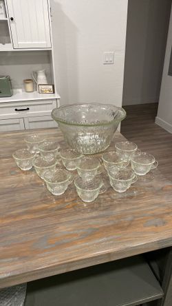 Beautiful Large Glass Punch bowl With Matching Set Of 12 Punch Glasses$8Goodyear, AZ