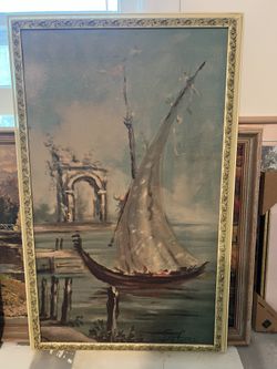 Mid Century Framed Sailboat Print De Corsi Entrata Del Lago Vintage Art$30Maryland Heights, MO