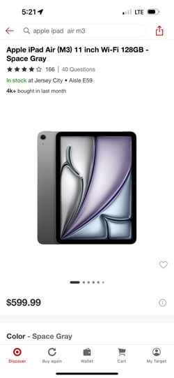 Apple iPad Air 11” (M3) 128GB + Magic Keyboard as a bundle.$600Jersey City, NJ