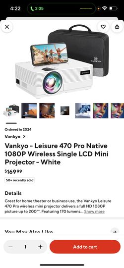 Vankyo Leisure 470 Pro Native 1080P Wireless Projector + Case$120Tempe, AZ