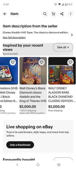 Walt Disney's Black Diamond Classic Edition Aladdin And The King Of Thieves$150Champions Gt, FL