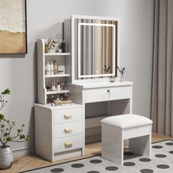 Vanity Table Makeup Vanity Desk with Sliding Mirror, Dressing Table with Drawers & Cosmetic Storage Shelves, Home Furniture Bedroom Makeup Vanity Tabl$75Ontario, CA
