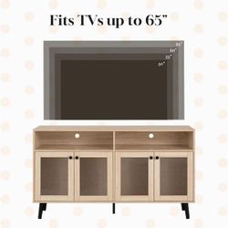 Natural TV Stand Entertainment Center Fits TVs up to 60 in. with 4 Doors, Open Shelves, Tapered Legs, Cable Management$120Ontario, CA