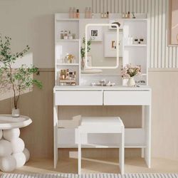 Vanity Desk with Mirror and Lights, for Bedroom,Includes Padded Stool, Easy to Assemble, Storage Drawers,Adjustable LED Light with Lighting Modes$85Ontario, CA