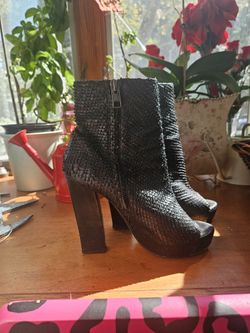 ALLSAINTS Black Textured Leather Peep-Toe Ankle Boots – Size 37 (US 6.5-7)$25Brooklyn, NY