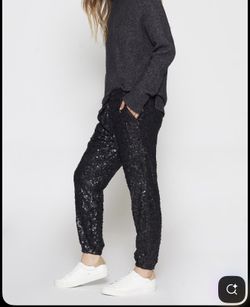 JOIE Aife Sequined Jogger Pants in Caviar Black $175Chicago, IL