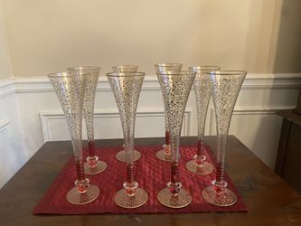 8 Pier One Rioja Champagne/Wine Glasses Gold Scrolls with Red Stem$20Atlanta, GA