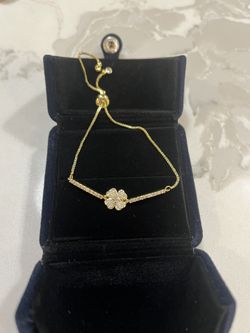 Gold Tone Four-Leaf Clover Bracelet β Adjustable, Sparkling Cubic Zirconia$17Palo Alto, CA