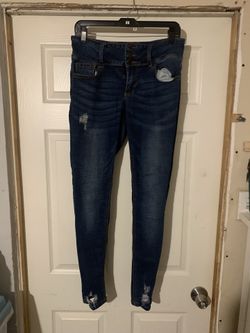 Woman’s Indigo Rein Brand Button Fly Ripped Stretch Jeans Size 13 (30-27)$8Pasadena, TX