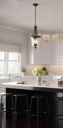 9.75 in. 3-Light Bulb Antique Bronze Tranistional Foyer Pendant With Clear Seeded Glass. I Have Only One Left$40South Houston, TX