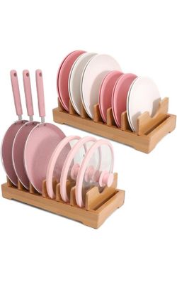 Bamboo kitchen storage rack - adjustable lid rack, suitable for cabinet storage, perfect for pots, pans, cutting boards, baking pans, plates, etc- Kee$10Henderson, NV