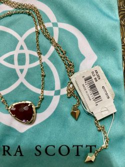 Kendra Scott Arleen Gold Tone Rounded Triangle Pendant Lariat Necklace Red Stone NW$25Denver, CO