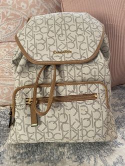 Calvin Klein Monogram Backpack Cream Tan Logo Drawstring Flap Bag$25Denver, CO