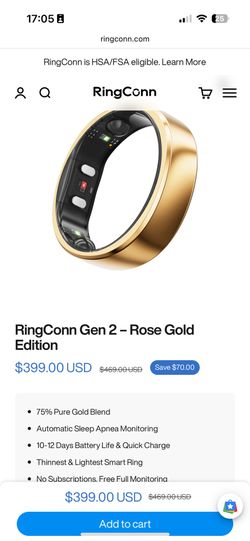 RingConn Gen 2 rose Gold Edition Smart Ring AI Size 9$100Sherrills Ford, NC