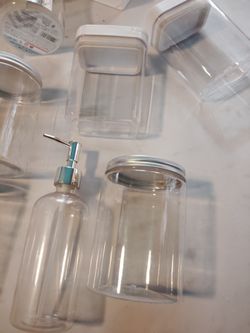 13 Piece Plastic Containers With Aluminum Lids And Soap Dispenser $20Gardena, CA