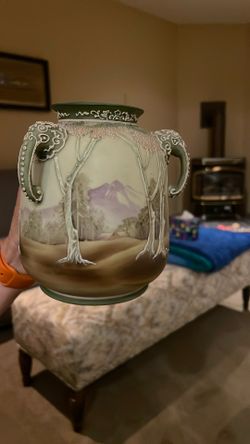 Nippon White Woodland Moriage Vase with Serpentine Handles$550Boone, CO