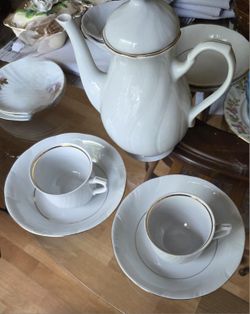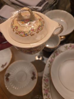 The items are porcelain or bone china teaware, specifically a creamer or milk jug with a floral design$50Boiling Springs, SC