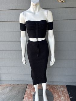 Black Shoulder Knit Skirt Set$45Compton, CA