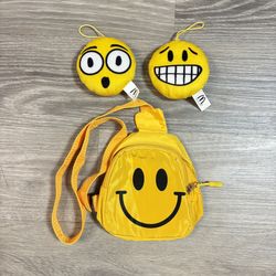 Emoji-Themed Accessories Bundle - Smiley Face Chest Sling Shoulder Bag + 2 McDonalds Happy Meal Collectibles$10Los Angeles, CA