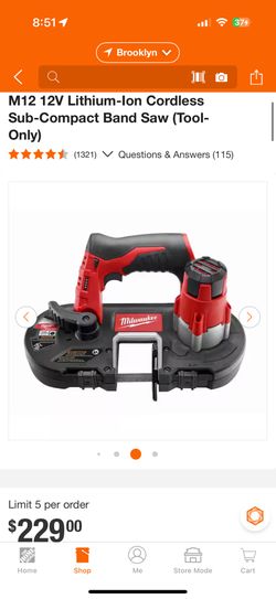 M12 12V Lithium-Ion Cordless Sub-Compact Band Saw $130Brooklyn, NY