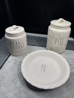 New Rae Dunn 2 Canister And Plate Set 3 Artisan Collection Magenta set includes Pie plate and Coffee & Beans canister$40Atlanta, GA