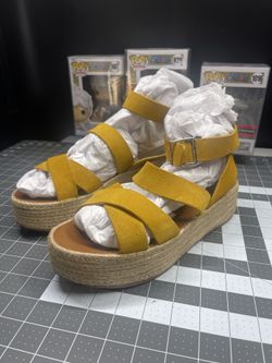 H&M Sandals Womens 9.5 Yellow Platform Buckle Ankle Strappy Suede Leather $30Atlanta, GA