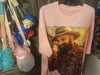 One-of-a-kind custom graphic tee. This is a 1-of-1 piece featuring original AI-generated concept art of a bearded farmer and a baby chick in a stunnin$35Fontana, CA
