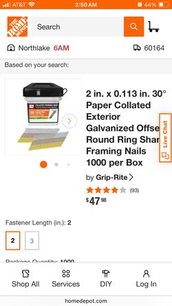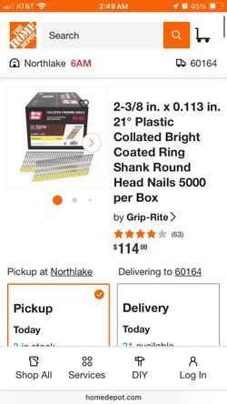 Grip Rite 2 Inch 3/8 X113 Bright Coated Interior Framing Nails 21 Degrees 5k Count $100Melrose Park, IL