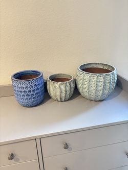 Set of 3 Decorative Ceramic Planters – Blue & Neutral$40Los Angeles, CA