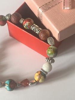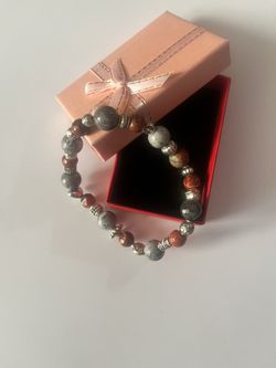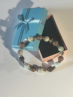 🌿 Sky Blue Jasper, Mahogany & Picasso Stone Bracelet – Handmade with Silver-Coated Copper Spacers$25Baltimore, MD