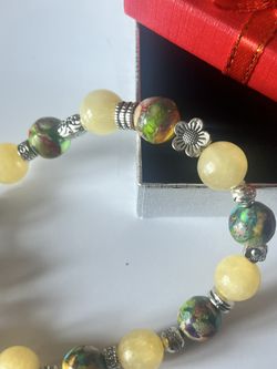 Imperial Red & Green Jasper with Yellow Jade Double-Banded Large Bracelet $25Baltimore, MD