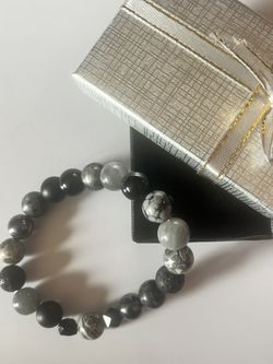 Large Men’s Black & Grey Gemstone Bracelet – Lava, Onyx, Jasper, Labradorite, Hematite & More (10mm)$30Baltimore, MD