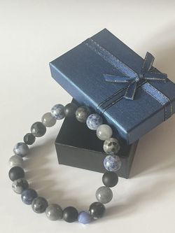 XL Forever Bracelet – Matte Onyx, Blue Dot Jasper, Grey Quartz, Snowflake, Faceted Onyx, Blue Jasper & Lavikite Labradorite $25Baltimore, MD