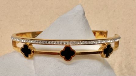 Gold Double Row “Clover & Pave CZ” Hinged Bangle Bracelet$15La Mesa, CA