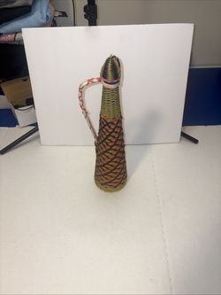 1960s Scoubidou SPANISH Hand Woven GLASS WINE BOTTLES Plastic Wicker$8Mcneil, AR