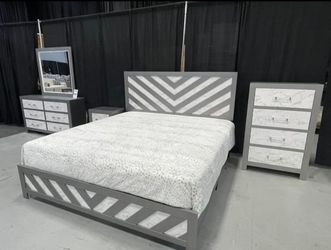 Juego de dormitorio moderno de 5 piezas: cama tamaño queen/king + tocador, espejo, cómoda y mesita de noche $1,299New York, NY