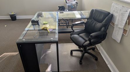 π₯ Modern L-Shaped Glass Office Desk + Executive Chair β Must Go!