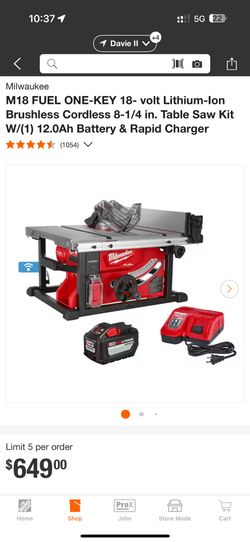 Milwaukee Fuel Table Saw With Battery And Rapid Charger $520Fort Lauderdale, FL